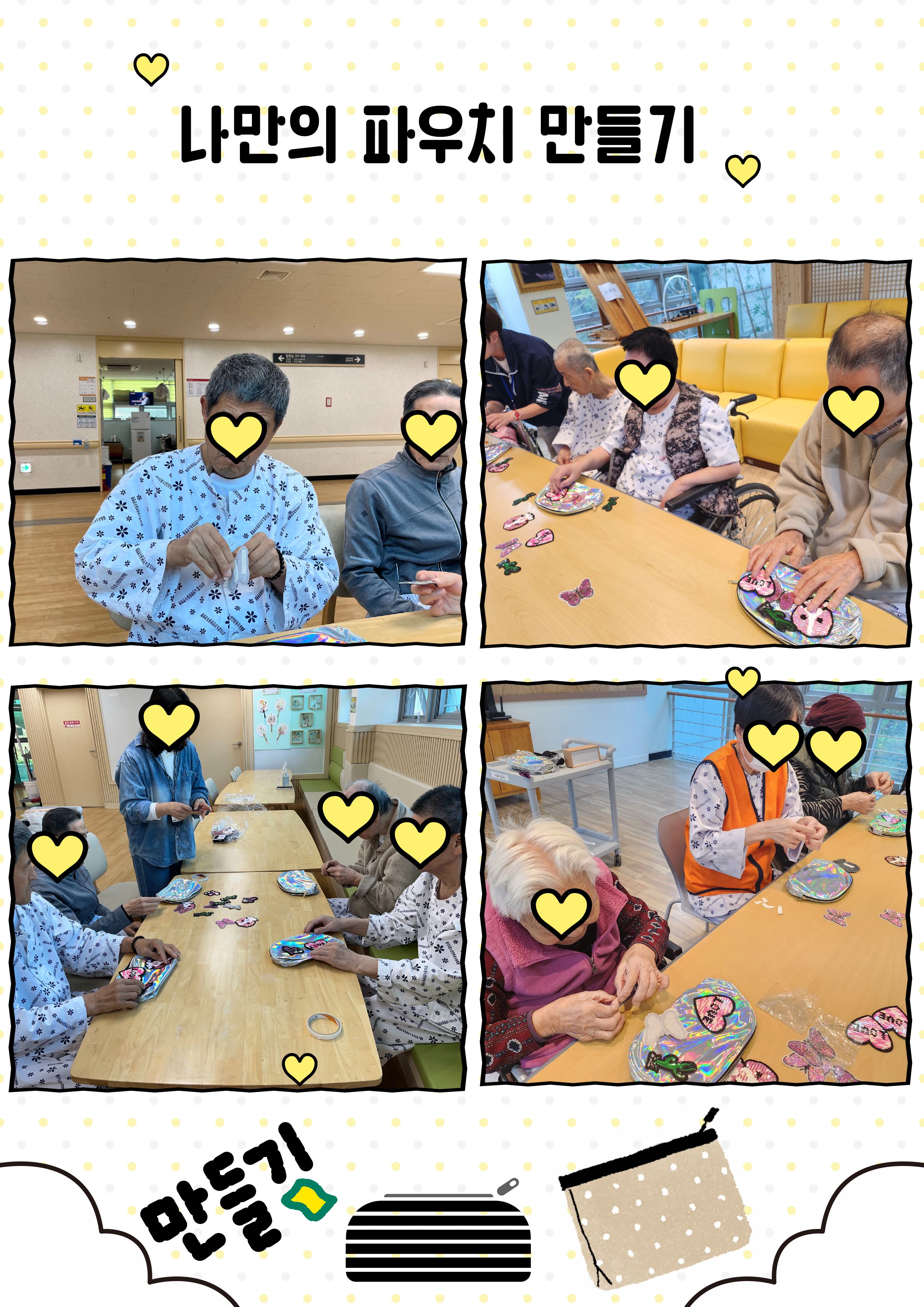 안녕하십니까 공공의료사업팀입니다.비약물프로그램의 공예활동으로 나만의 파우치 만들기와 신체활동인 맨몸근력운동을 진행해보았습니..