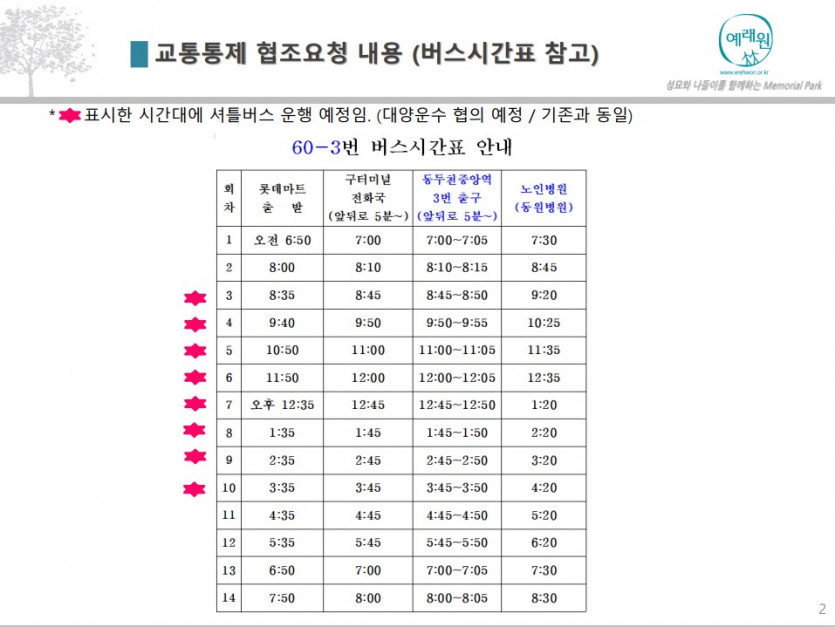 2월1일 설 당일 60-3 버스 운행 변경 안내 페이지 정보 작성자 경기도립노인전문동두천병원 댓글 0건 조회 17,124회 작성일 22-01-29 10:58 목록 본문 이전글비급여목록 2022년 22.01.29 다음글2022년 01월 24일~ 비대면 면회 안내 22.01.19 댓글 0 댓글목록 등록된 댓글이 없습니다.